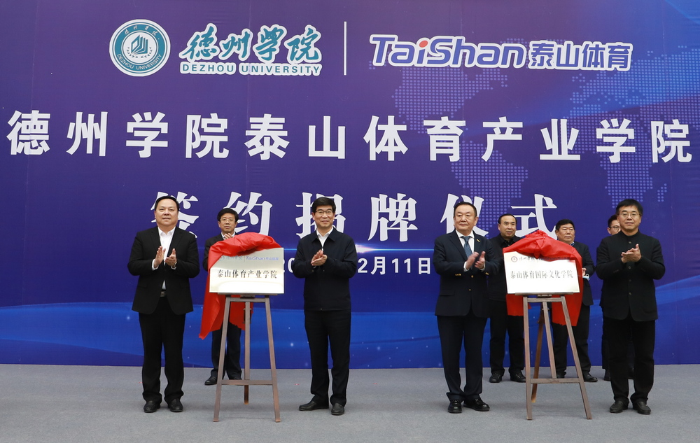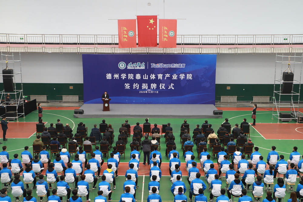 泰山体育产业集团,学校有关部门、学院负责人和师生代表参加仪式。