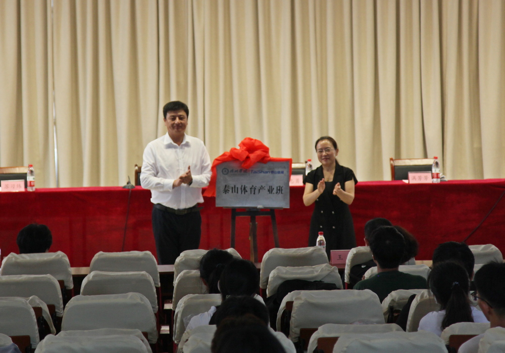 徐静与泰山体育产业集团卞志勇副总裁共同为“泰山体育产业班”揭牌。