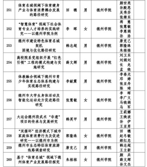 2022年4月29日,《关于公布第十届“调研德州”活动立项课题的通知》发布,德州学院体育学院教师科研团队主持的《体育名城视阈下体育健身产业与体育消费耦合发展的路径研究》《德州市生态特征体育旅游线路调查研究》《德州市建设特色体育名城契机困境与优化路径研究》等11项课题立项获批。体育学院教师科研团队围绕建设体育名城、创建国家体育消费城市、培养体育创新型人才等方面进行了深入调研,充分发挥高等院校的科研创新能力,为更好地服务地方经济、大力发展地方产业、培养高质量的应用型体育人才贡献力量,为德州市更好地“创建体育名城”发挥积极作用。
